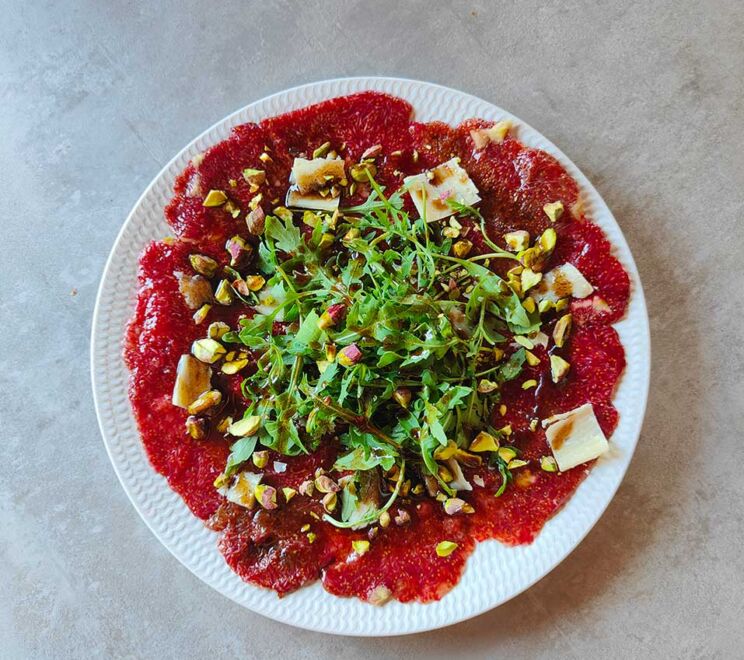 Carpaccio de figues amb parmesà, ruca i festucs: un entrant fàcil i deliciós