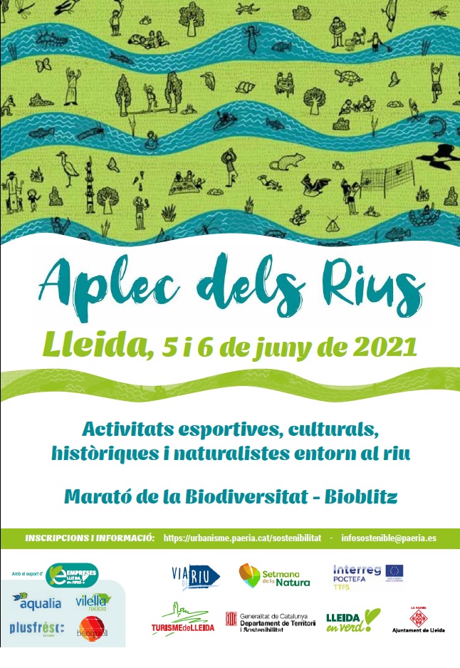- Una àmplia proposta per descobrir la biodiversitat del Riu Segre, anomenada BIOBLITZ-marató de la biodiversitat de Lleida, on la ciutadania podrà, de la mà de 9 experts, fer diversos recorreguts des del Parc de la Mitjana i els Aiguamolls de Rufea per identificar les diferents espècies de fauna i flora més habituals del nostre entorn fluvial i compartir a les xarxes socials amb l’etiqueta #BioblitzLleida imatges de les espècies de l’entorn del riu que no coneguin i vulguin que els experts els ajudin a identificar-les.